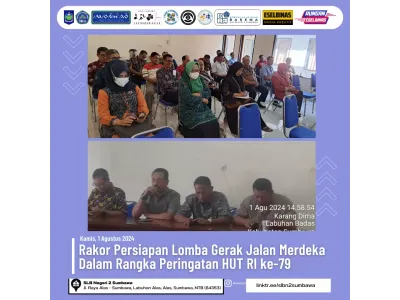 Kepala Sekolah SLB Negeri 2 Sumbawa, Burhanuddin, S.Pi., M.Inov, hadir dalam acara Rapat Koordinasi Lomba Gerak Jalan Merdeka di Aula