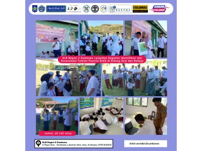 Kegiatan Identifikasi dan Assesment Talenta peserta didik SLB Negeri 2 Sumbawa di bidang olah raga dilaksanakan Sabtu, 27 Juli 2024.,
